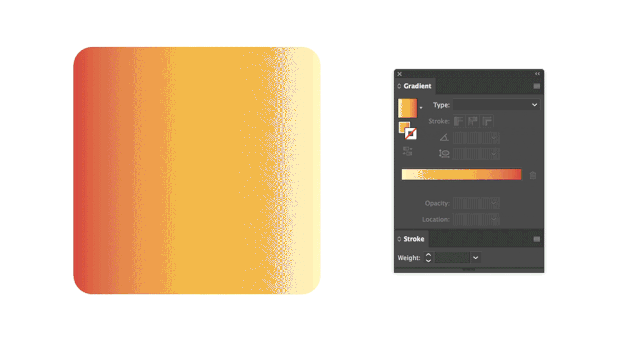 跨描邊應用漸變, 是以描邊的外邊緣,向描邊內邊緣應用漸變,這種方式可以繪制出由遠及近的透視感。