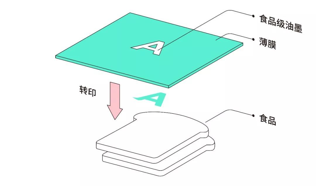 基于食品衛生管理法將食品或食品添加物制成油墨,印刷在食品上。上色方式有先將印紋印刷在用蒟蒻等制作的薄膜再轉印到食品外,也有噴墨列印的方式。