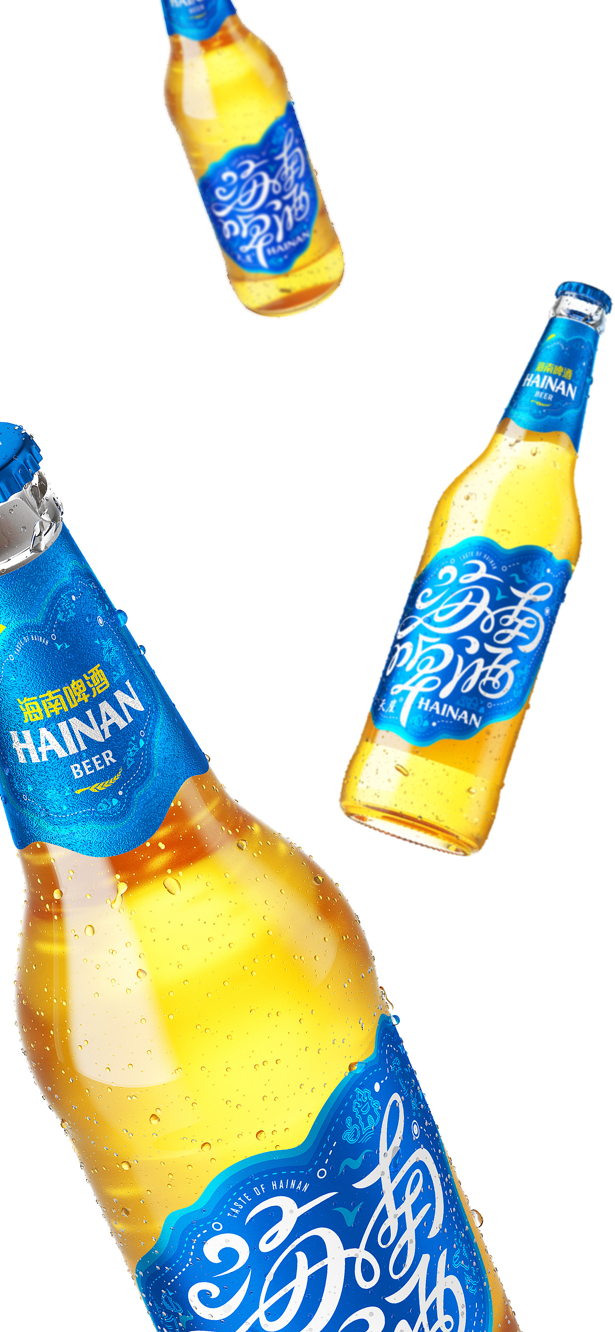 海南啤酒的包裝設計創意靈感來自于“浪”,結合海南本土元素再設計,提取海浪、海鷗的形狀,通過文字變形處理,將元素以圖像化表現,賦予海南啤酒的新鮮活力。圓潤、律動的圖形文字,體現海南的舒適自由度,將悠然愜意的感覺融入設計之中。主圖形放大化,突破常規設計局限,形成強烈的視覺沖擊力。