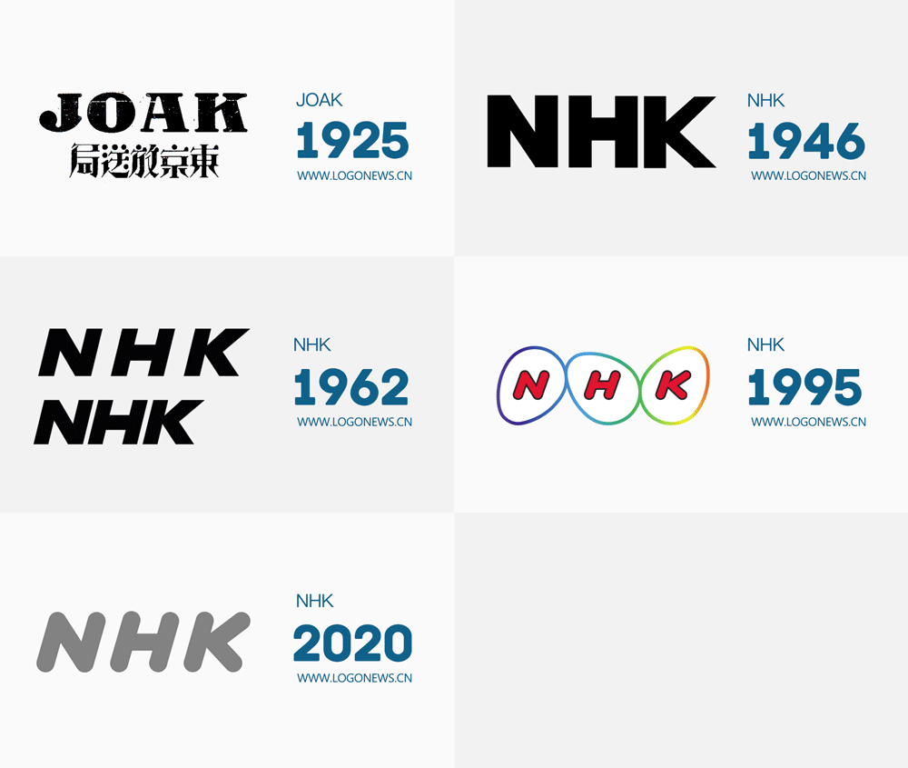 1946年更名NHK 后,日本廣播協(xié)會(huì)使用日語(yǔ)讀音羅馬化「Nippon Hoso Kyokai」的首字母設(shè)計(jì)了簡(jiǎn)潔的無(wú)襯線字標(biāo)。