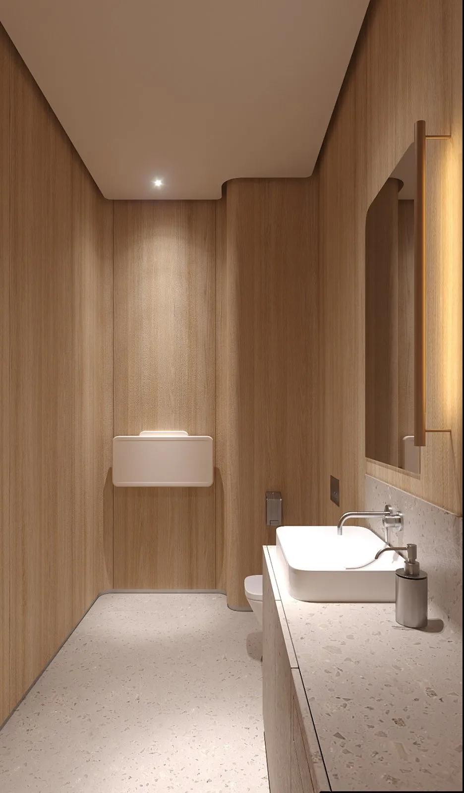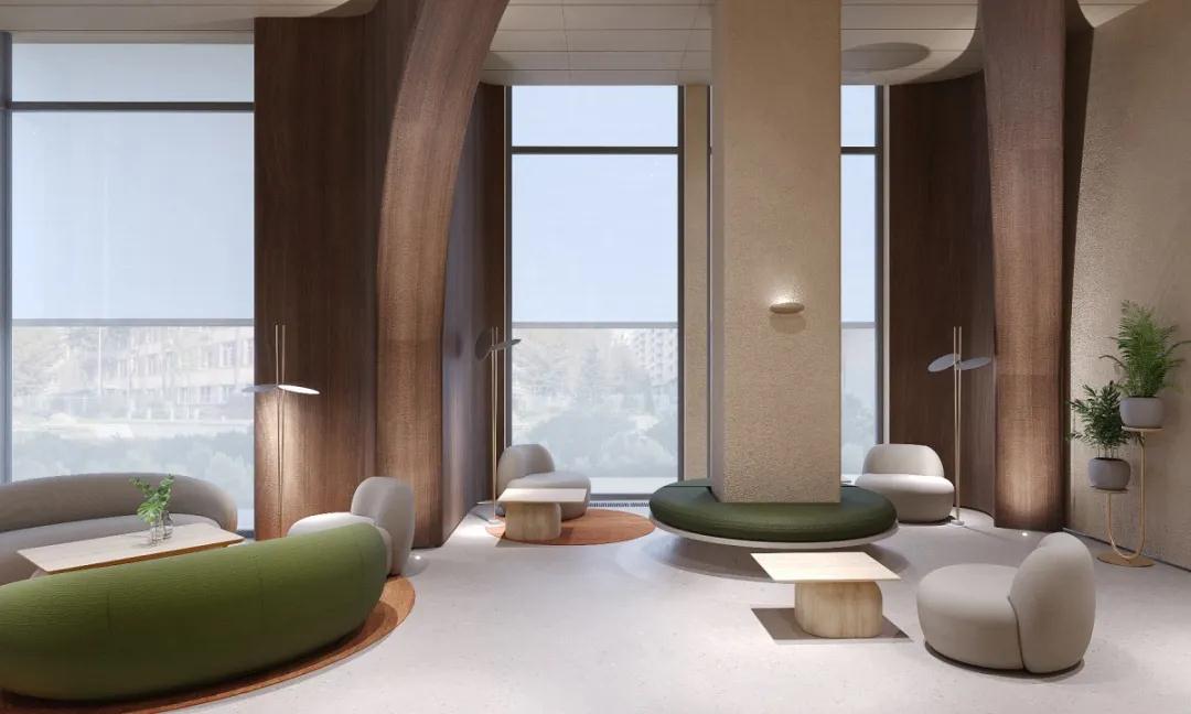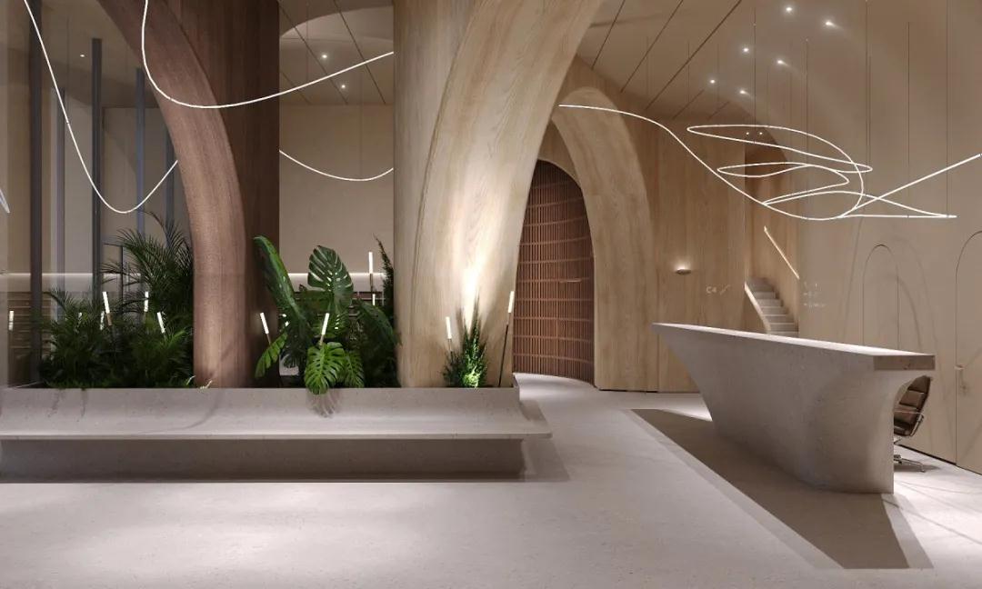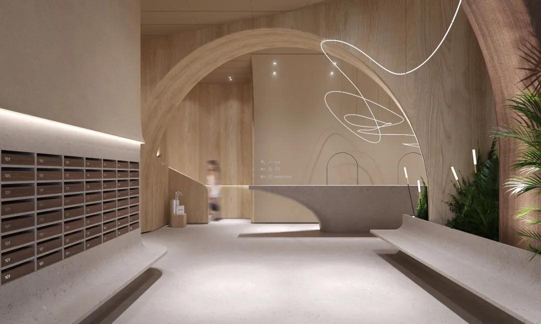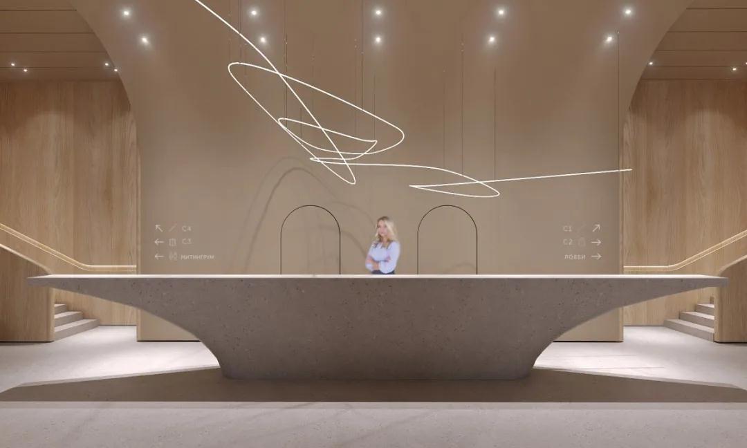 位于烏克蘭基輔的一個商業項目Kovalska Crystal Park,由當地的室內設計工作室Artem Vakhrin設計。Kovalska Crystal Park大堂是一個600多平方米的多功能空間。M區,包括娛樂區、會議場所、儲藏室、禮賓區等等。大堂設計與建筑整體建筑理念和諧互補。該項目使用了自然紋理的暖色調。其突出的內部元素,如柱子、拱門,在視覺上擴展了空間,強調了舒適的氛圍。