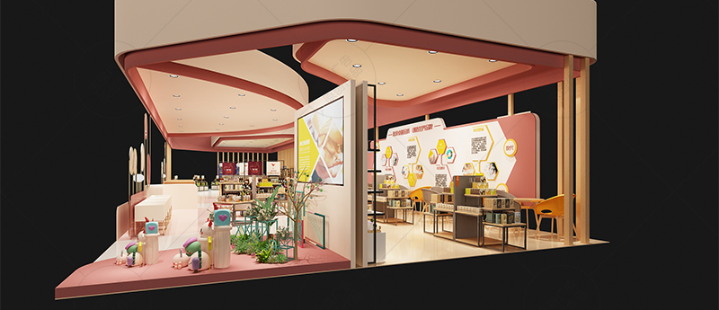 該項(xiàng)目屬于中百集團(tuán)首次參展進(jìn)口食品博覽會(huì),重點(diǎn)展示企業(yè)形象與商品展示氛圍,參展商品豐富,功能區(qū)域設(shè)置齊全,弧形的地面通道源自中百集團(tuán)LOGO形象,構(gòu)造出時(shí)尚休閑的購物動(dòng)線。優(yōu)美的弧形線條設(shè)計(jì),精選材質(zhì)搭配,溫馨的色彩氛圍,營造出高雅脫俗的展廳形象。
